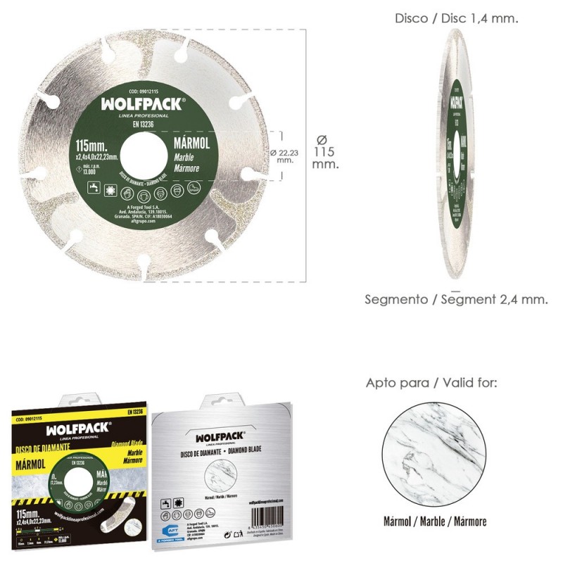 Disco Diamante Ø 115 mm. Marmol. Filo Especialmente Diamantado WOLFPACK LINEA PROFESIONAL