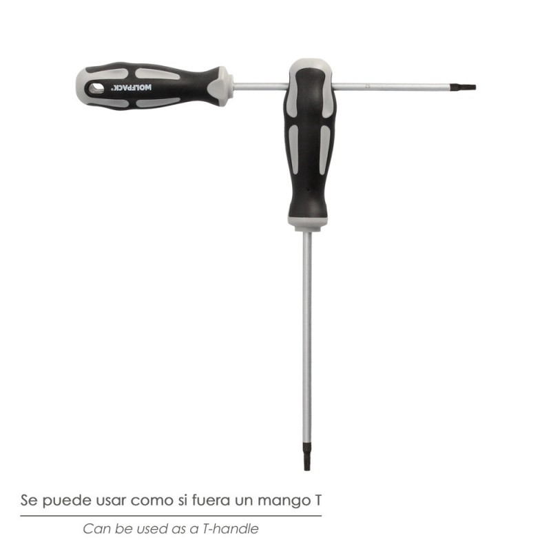 Destornillador Torx Inviolable Acero S2 Mango TPR Bimaterial. Medida T25 x Ø 6,0 x 100 mm. WOLFPACK LINEA PROFESIONAL