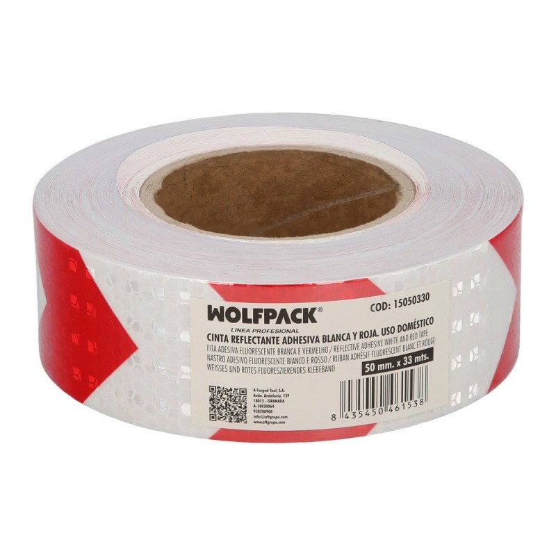 Cinta Adhesiva Reflectante Blanca/ Roja 50 mm. x 33 metros. Uso doméstico. WOLFPACK LINEA PROFESIONAL