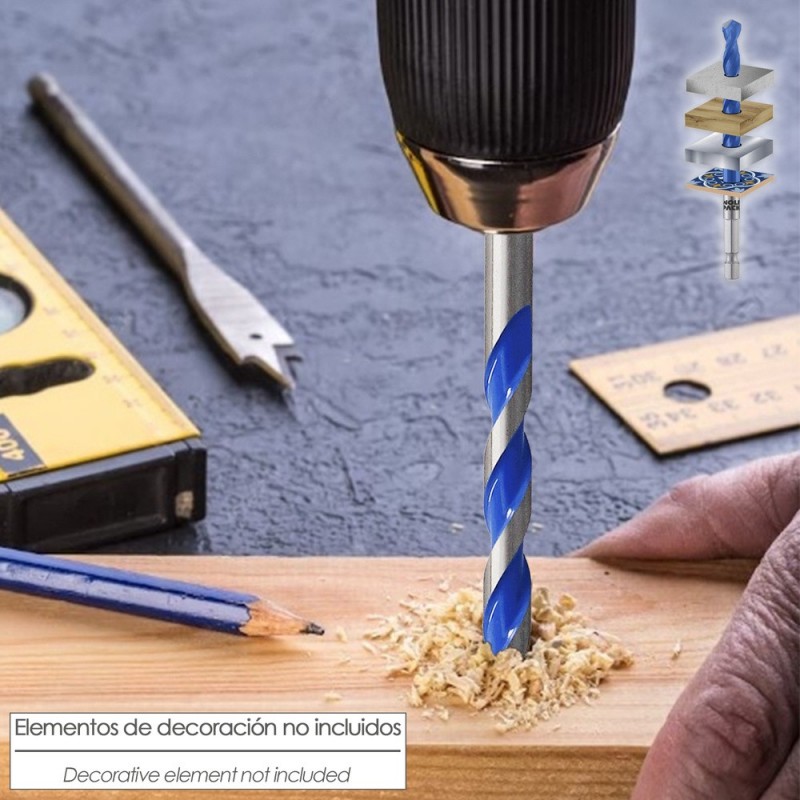 - Apta para la perforación de azulejos, cerámica, mármol, hormigón, metal, madera y plástico.