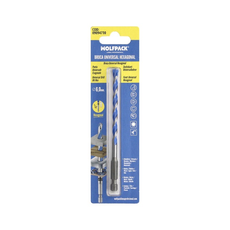 Broca Universal Hexagonal Ø 6,0 mm. (Blister 1 pieza) WOLFPACK LINEA PROFESIONAL