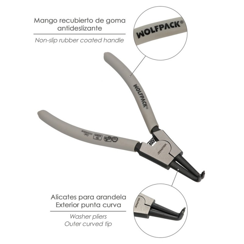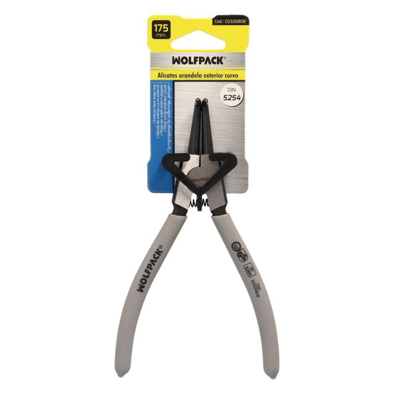 Alicates Arandelas Exteriores Curvo 175 mm. Acero Din 5254. Anillos De Presion, Anillos De Retención, Arandelas Circlips WOLFPACK LINEA PROFESIONAL