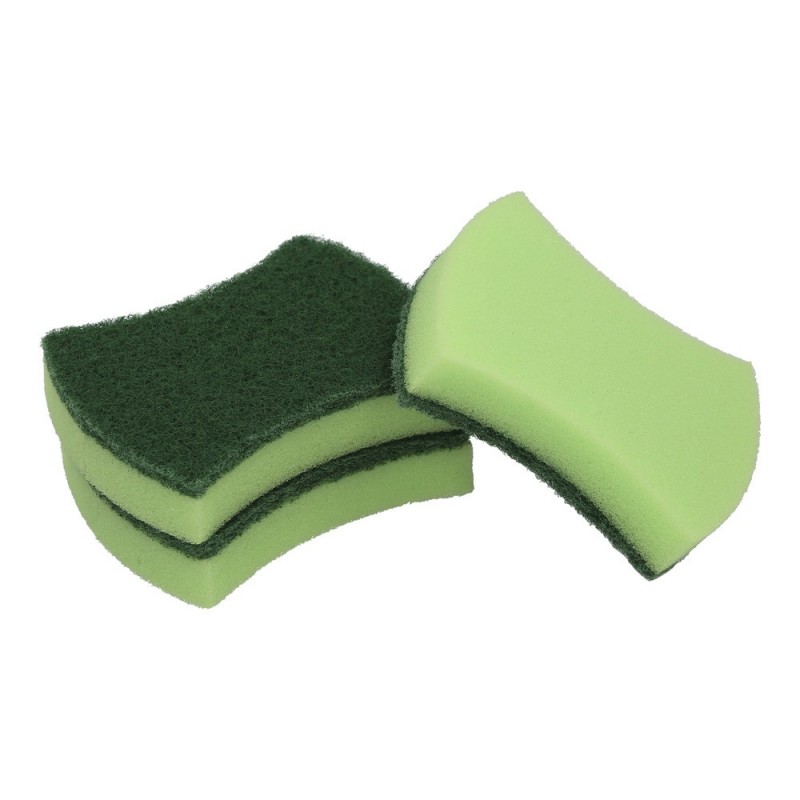 Estropajo Verde Con Esponja. Pack 3 Unidades.