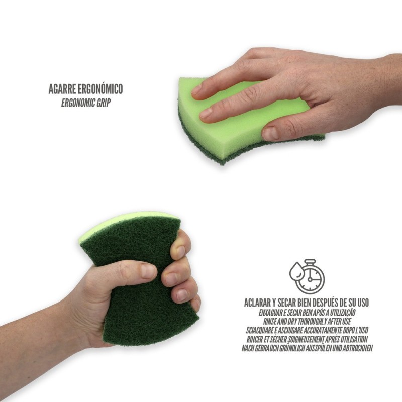 - ArtÃculo conocido como estropajo cocina, estropajo verde, estropajo con esponja, fibra esponja, esponja abrasiva, espoja limpieza, esponja lavaplatos, estropajo platos, etc.
