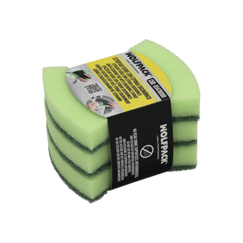 Estropajo Verde Con Esponja. Pack 3 Unidades. WOLFPACK LINEA PROFESIONAL
