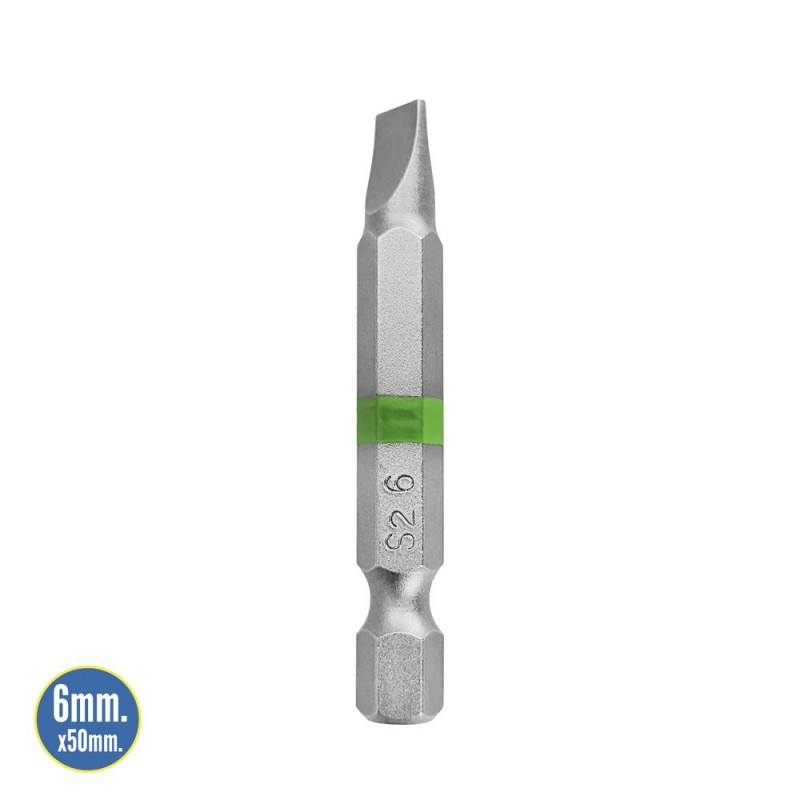 Puntas Destornillador Largo Plano 6 mm. (2 Piezas). Acero S2 al Cromo Vanadio. Puntas Hexagonales, Destorpuntas, WOLFPACK LINEA PROFESIONAL