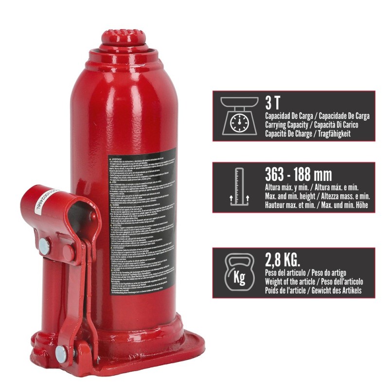 Gato Hidraulico Botella 3000 Kg. WOLFPACK LINEA PROFESIONAL