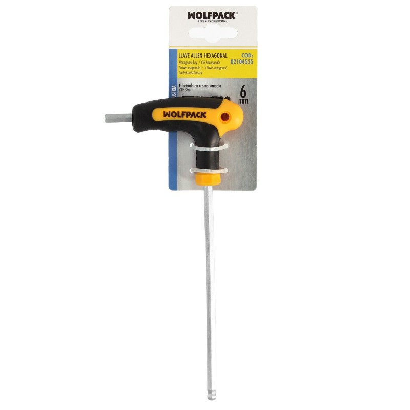 Llave Allen Con Bola Mango Bimaterial "Soft Touch" Forma T 6,0 mm. Acero Cromo Vanadio, Destornillador allen, llave hexagonal WOLFPACK LINEA PROFESIONAL