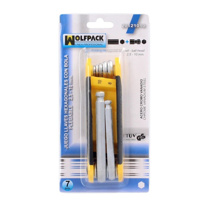 Juego 7 Llaves Allen Plegable Con Bola Acero Cromo Vanadio. Juego Llaves Hexagonales, Juego De Llaves Plegable Allen Con Bola WOLFPACK LINEA PROFESIONAL