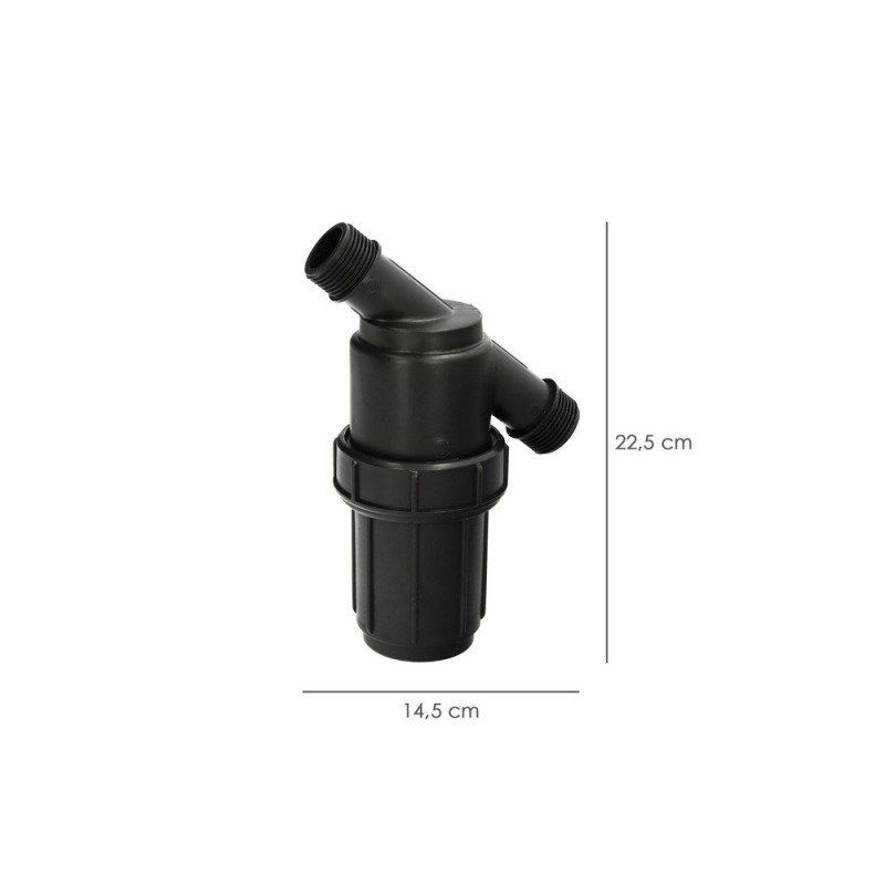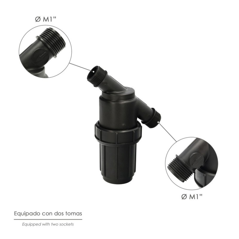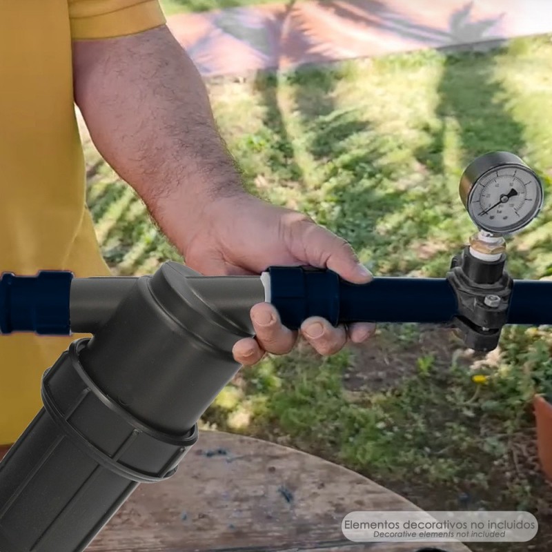- Con este filtro se evita que las impurezas y la suciedad taponen las tuberias y los goteros.