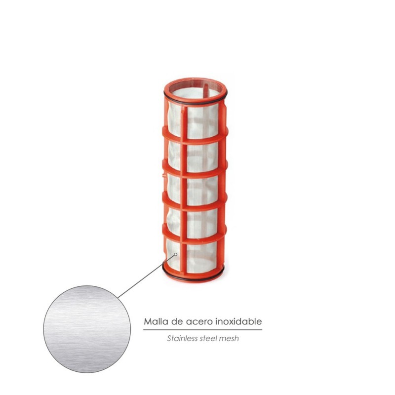 - El cartucho de malla tiene una capacidad de filtración de 100 mesh, incorpora 2 juntas toricas en los extemos para una mayor estanqueidad y reducción de suciedad.