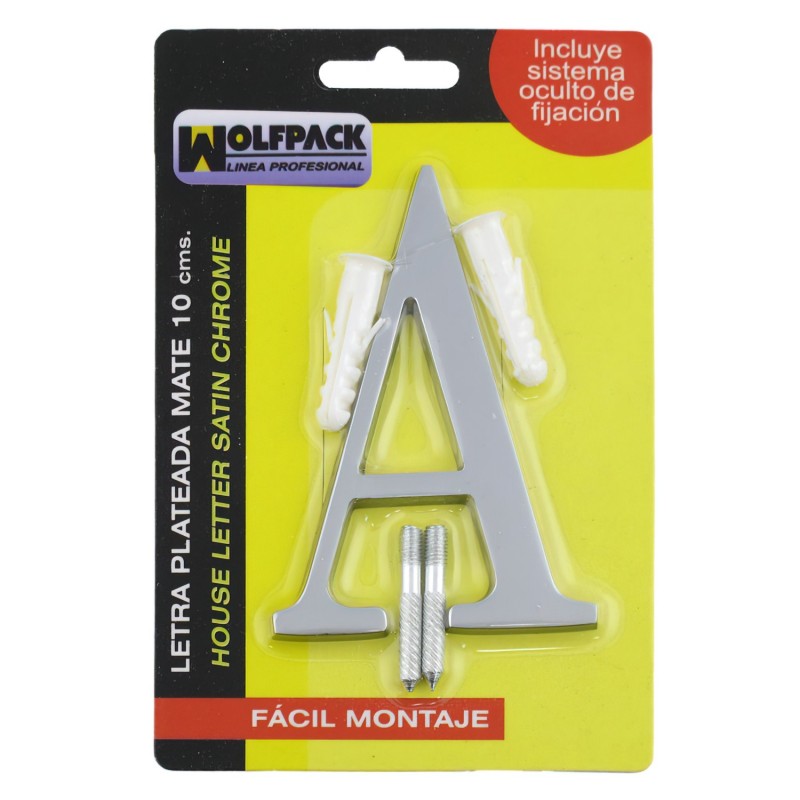 Letra Metal "A" Plateada Mate 10 cm. con Tornilleria Oculta (Blister 1 Pieza) WOLFPACK LINEA PROFESIONAL