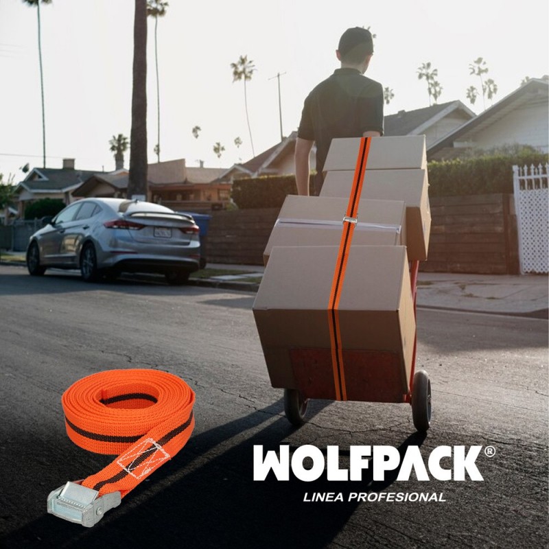 Cinta De Amarre Con Trinquete 5 metros x 38 mm. Trinquete Metalico Automatico, Cincha, Eslinga Mercancia, Correa Sujeción WOLFPACK LINEA PROFESIONAL