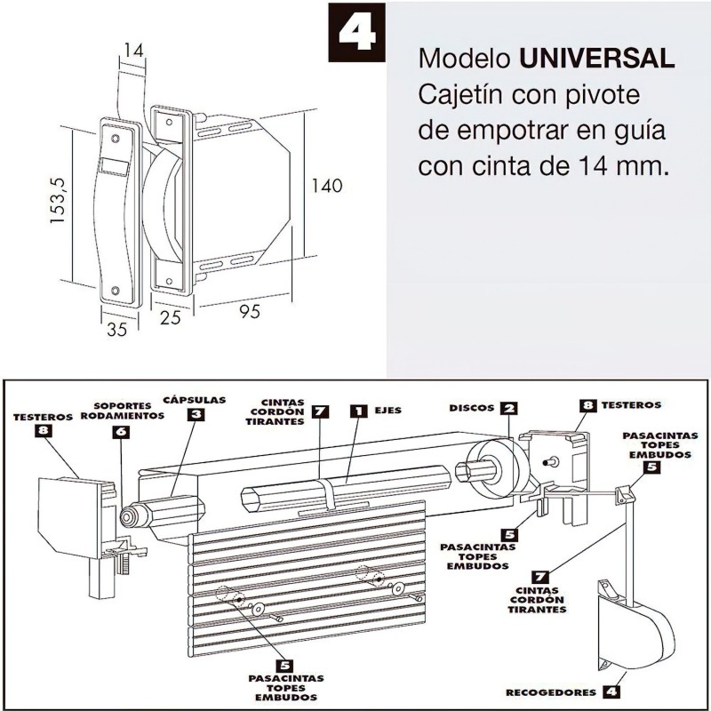 Recogedor Persiana Mini 6 Metros Embutir Cinta 14 mm. WOLFPACK LINEA PROFESIONAL