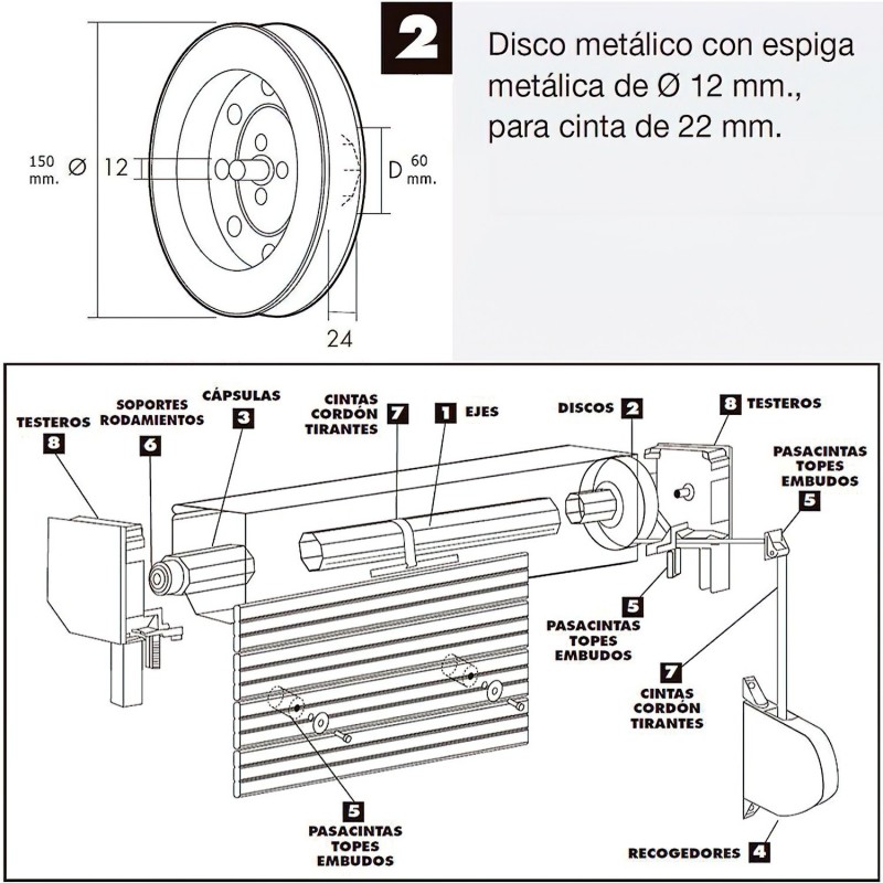 Disco Persiana Metalico Espiga Metalica 150x60 Cinta 22 mm. WOLFPACK LINEA PROFESIONAL