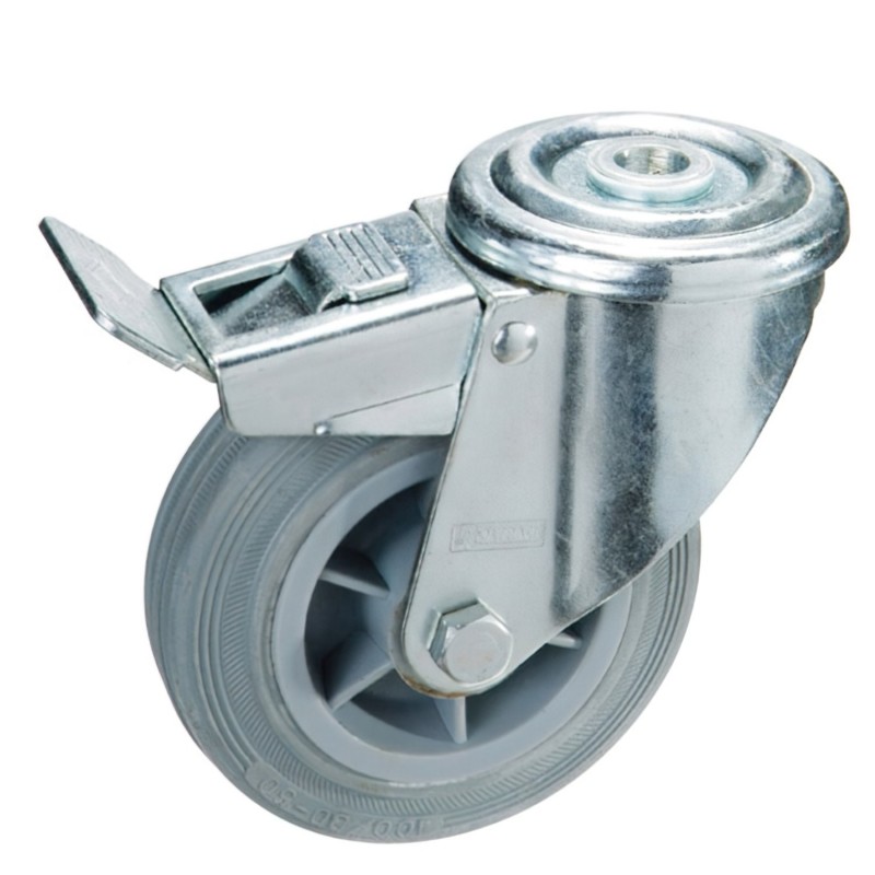 Rueda Industrial Goma Gris Pasante con freno 80mm