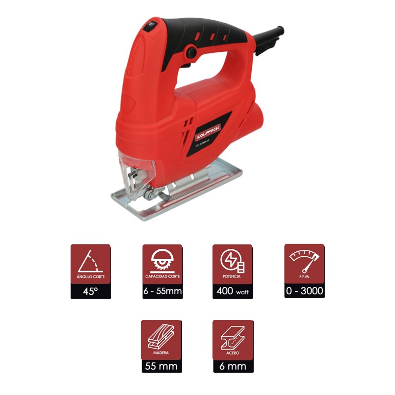 Sierra Vaiven 400 Watt. Sierra de Calar, Profundidad Corte 55 mm. Madera. Inclinable WOLFPACK LINEA PROFESIONAL