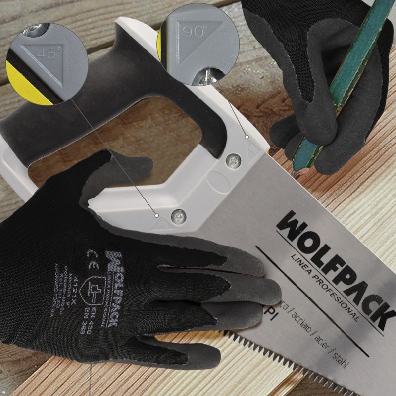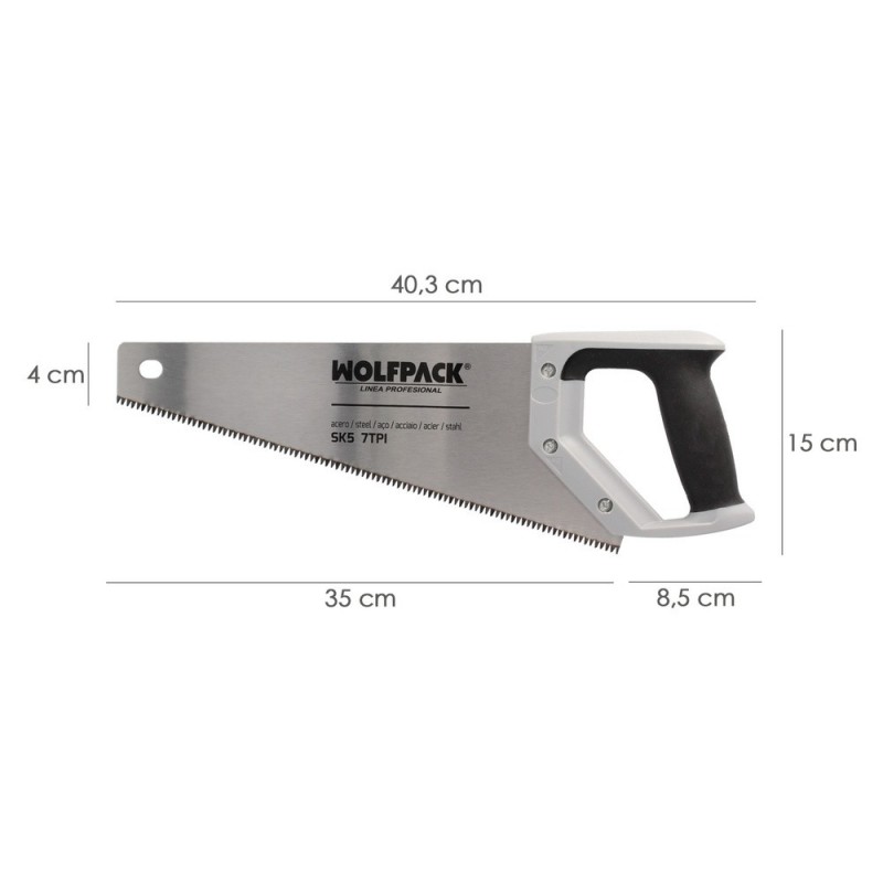 Serrucho Carpintero Bimaterial 350 mm. / 14" Acero SK5 Triple Afilado Sierra Carpintero, Serrucho Carpinteria, Sierra Costilla WOLFPACK LINEA PROFESIONAL