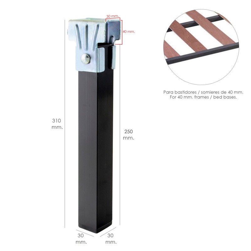 Juego Patas Somier Cuadradas (4 Unidades) Tubo 30x30 mm. Para Somier de 40x30 mm. Altura 25 cm. WOLFPACK LINEA PROFESIONAL
